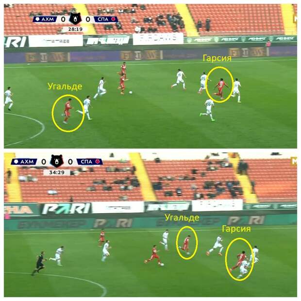 Показателен матч с «Ахматом» — один из первых, когда Угальде и Гарсия начали играть вместе. Именно новичок оказывался в центре атаки, а лучший бомбардир скитался по полю. Уже тогда решение Станковича выглядело странно: